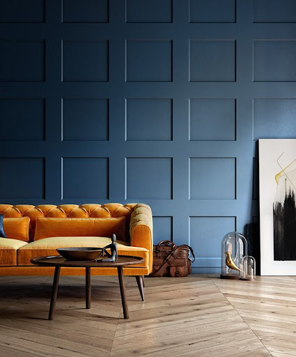 Jun 30 2013 - Explore Tracy Feldmans board Dark Blue Walls Orange Couch followed by 113 people on Pinterest. Add in white crown molding and wall trim for an elegant look. Turmeric color or Behr blue color of the year - webuser_956493238.
